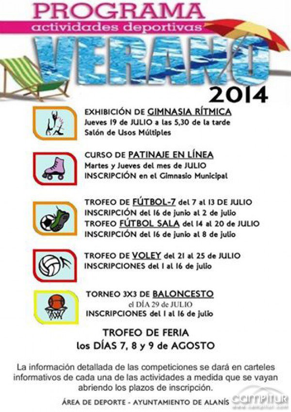Desde el Ayuntamiento de Alanís ya ha sido elaborado el programa de actividades deportivas que se desarrollarán durante estos meses estivales en la localidad sevillana.