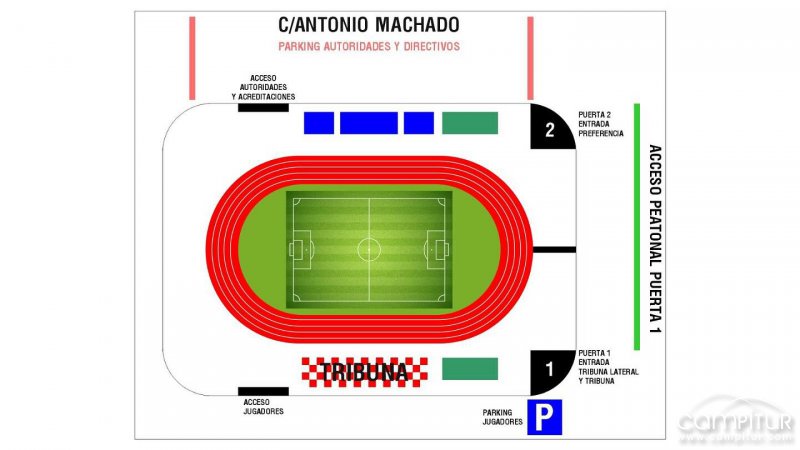• Puerta trasera junto a la Tribuna Principal: uso exclusivo para jugadores, técnicos y árbitros.