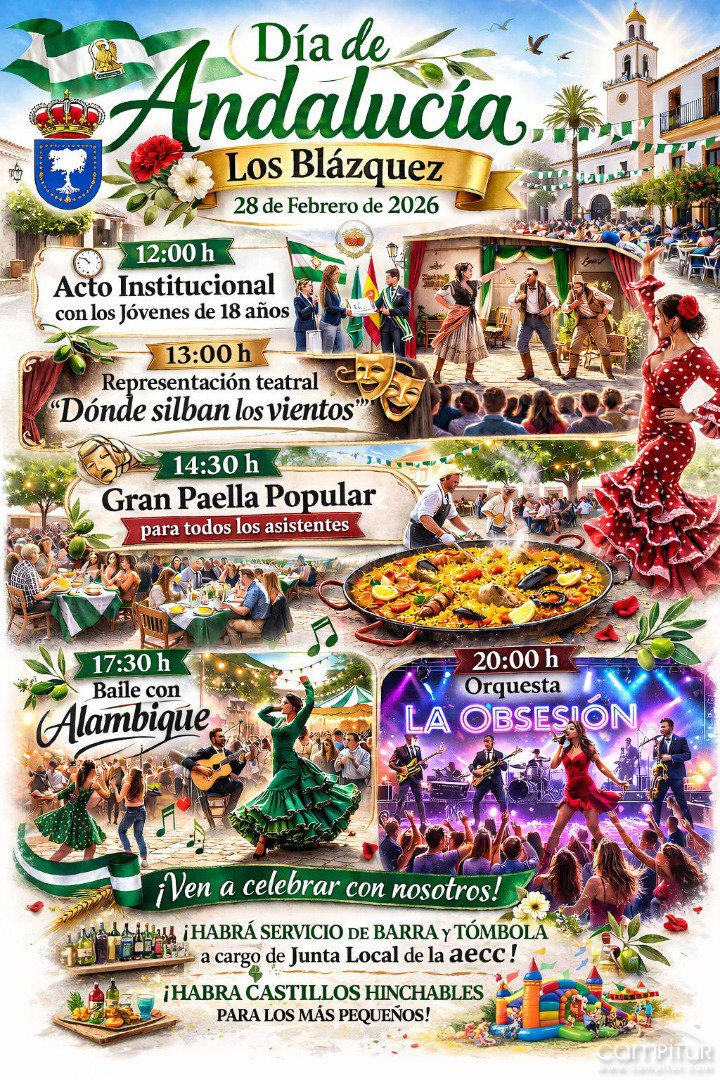 La localidad de Los Blázquez se prepara para conmemorar el Día de Andalucía con una programación completa para todos los públicos el 28 de febrero de 2026, en una jornada pensada para disfrutar en familia y reforzar el sentimiento de convivencia y celebración.