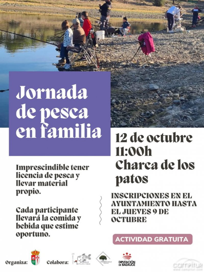 El próximo 12 de octubre a las 11:00 horas, la localidad de Maguilla acogerá una nueva edición de la Jornada de Pesca en Familia, una actividad organizada por el Ayuntamiento con la colaboración de la Diputación de Badajoz y la Asociación de Pescadores de Maguilla.